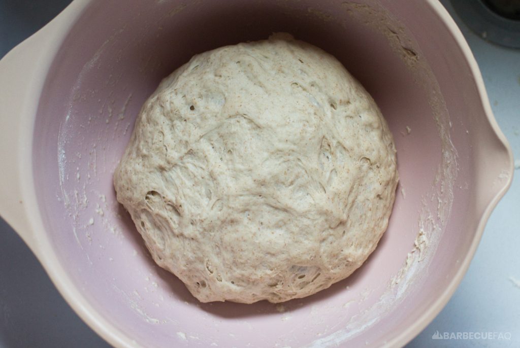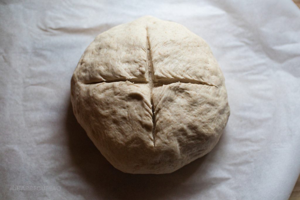 • Remove dough from bowl and place on a piece of parchment paper. Cover with the same bowl and allow to proof for 1 more hour.