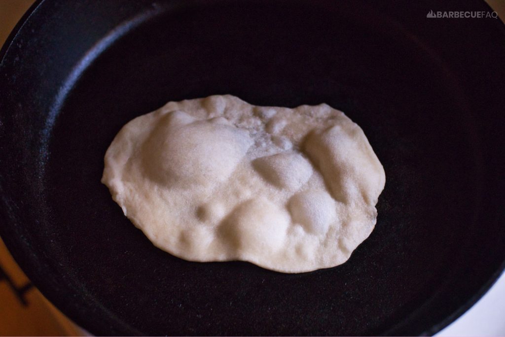 Once the skillet is heated, cook the tortillas on each side until bubbling, then flip and repeat.