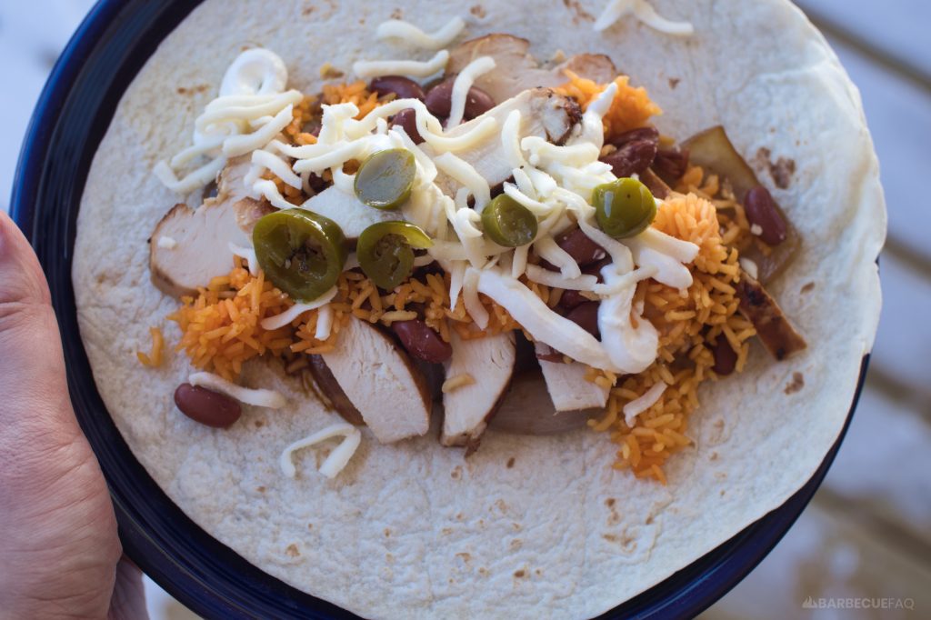 - Serve with cooked onions, tortillas, pickled jalapenos, cheese, rice, and beans.