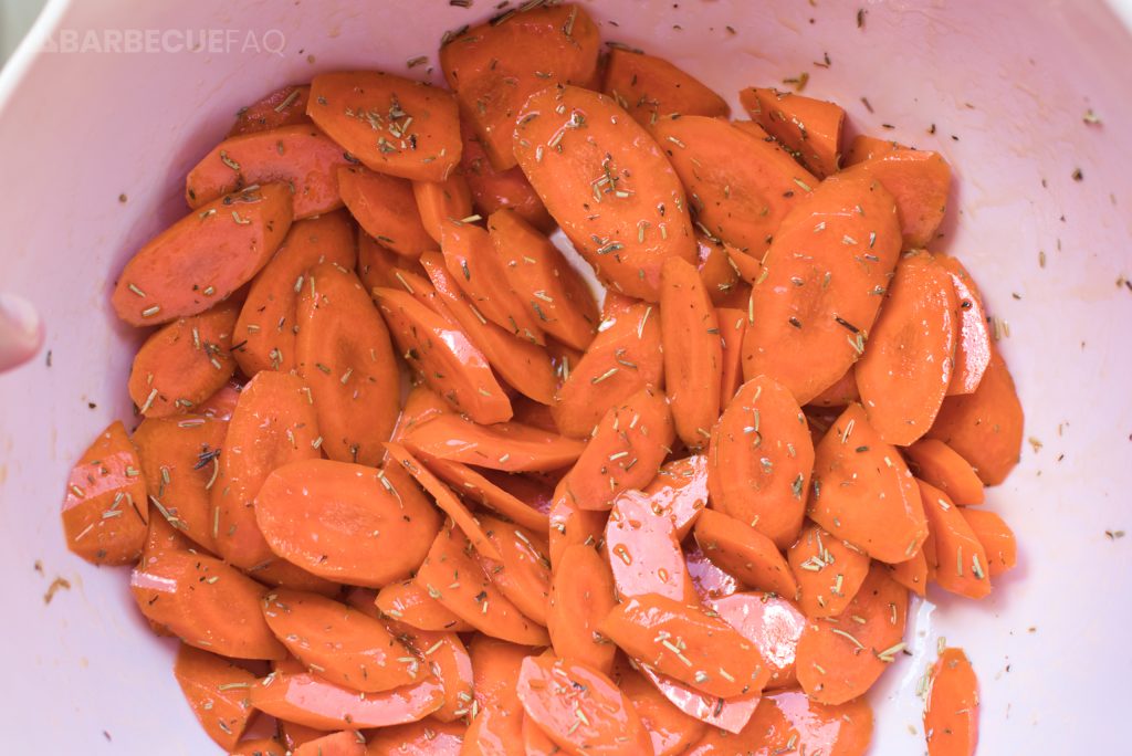 - Toss carrots with olive oil, dried thyme, and dried rosemary until evenly coated.